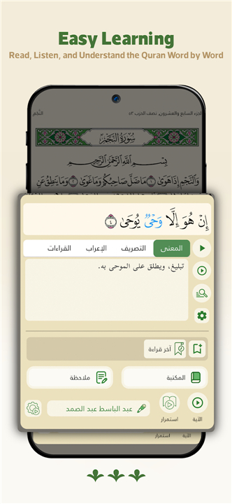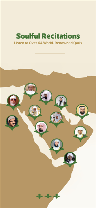 • Experience the spiritual resonance of the Quran through the voices of 64 world-renowned reciters.