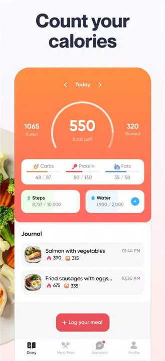 Users simply snap a photo of their meals, and the app logs calorie counts, macronutrients, and nutritional information automatically.