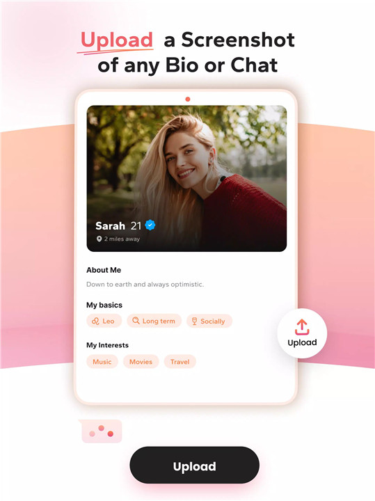 Users upload a screenshot of a chat or match bio, and WingAI generates instant, engaging replies to boost conversation success.