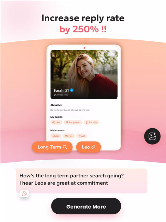 Statistics show WingAI achieves more than twice the response rate of typical online dating openers. By providing optimized messaging that captures attention, users experience faster, more frequent interactions that increase the likelihood of meaningful connections.