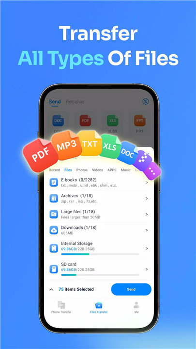 MobileTrans is an all-in-one transfer tool that supports an extensive range of content including photos, videos, music, contacts, SMS, documents (Word, Excel, PowerPoint, PDFs, eBooks), WhatsApp chat history, WhatsApp Business data, and calendar events. It ensures nothing important is left behind when you switch phones.