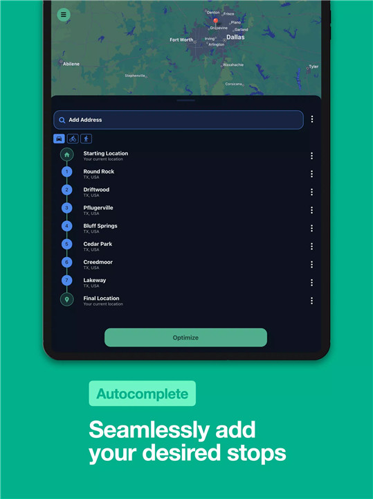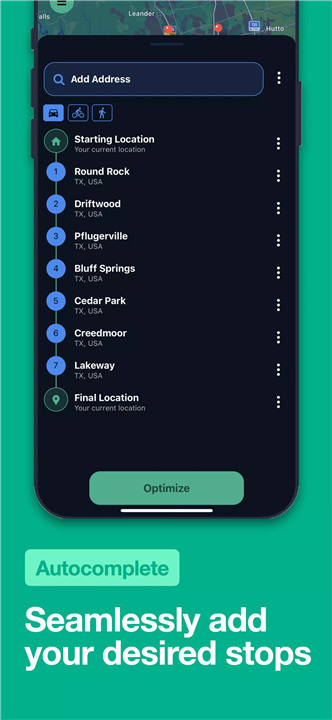 No more manual route planning! Enter all your destinations, tap “Optimize,” and Routora’s powerful AI will automatically arrange them in the fastest and most efficient order. Whether you’re driving, cycling, or walking, Routora helps you reach every stop in record time.