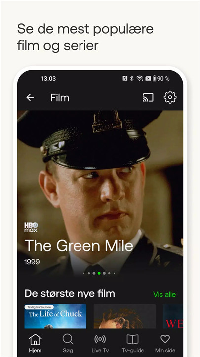 The app offers live TV channels, movies, series, a large TV archive, and Denmark’s largest children’s entertainment universe.