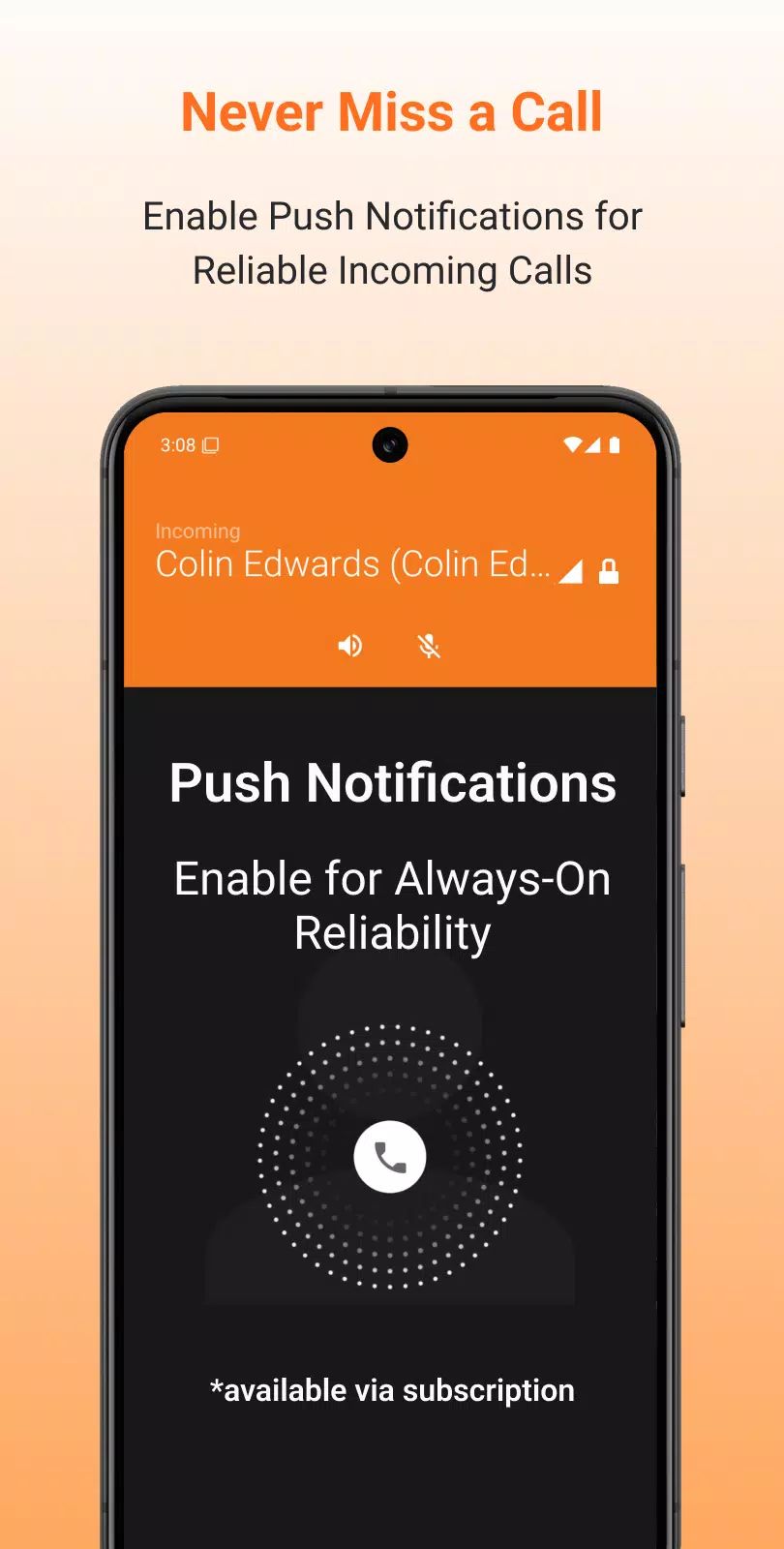 · PUSH service to ensure reliable incoming calls, even when the app runs in the background.