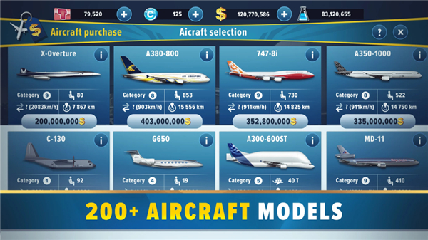 Choose from more than 200 authentic airplane models based on real-world civil aviation. This feature allows you to design, manage, and expand your fleet with precision and style.