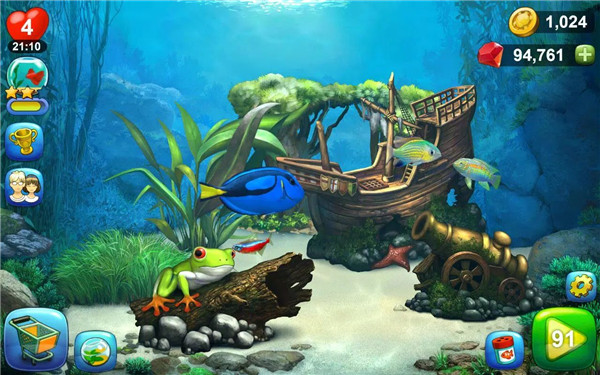 Design your dream underwater world by unlocking new fish tanks, choosing from a variety of aquarium decorations, and arranging them to your liking. Create serene environments or vibrant ocean scenes—it’s all up to you.