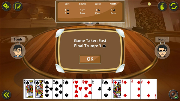 • Gameplay follows rules that are largely similar to Contract Bridge, with trick-taking and partnership play.
