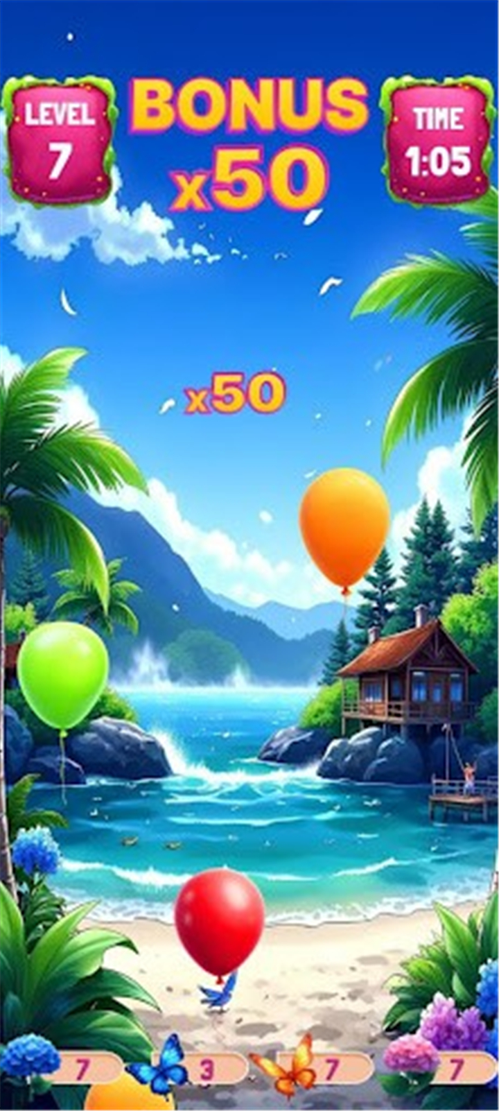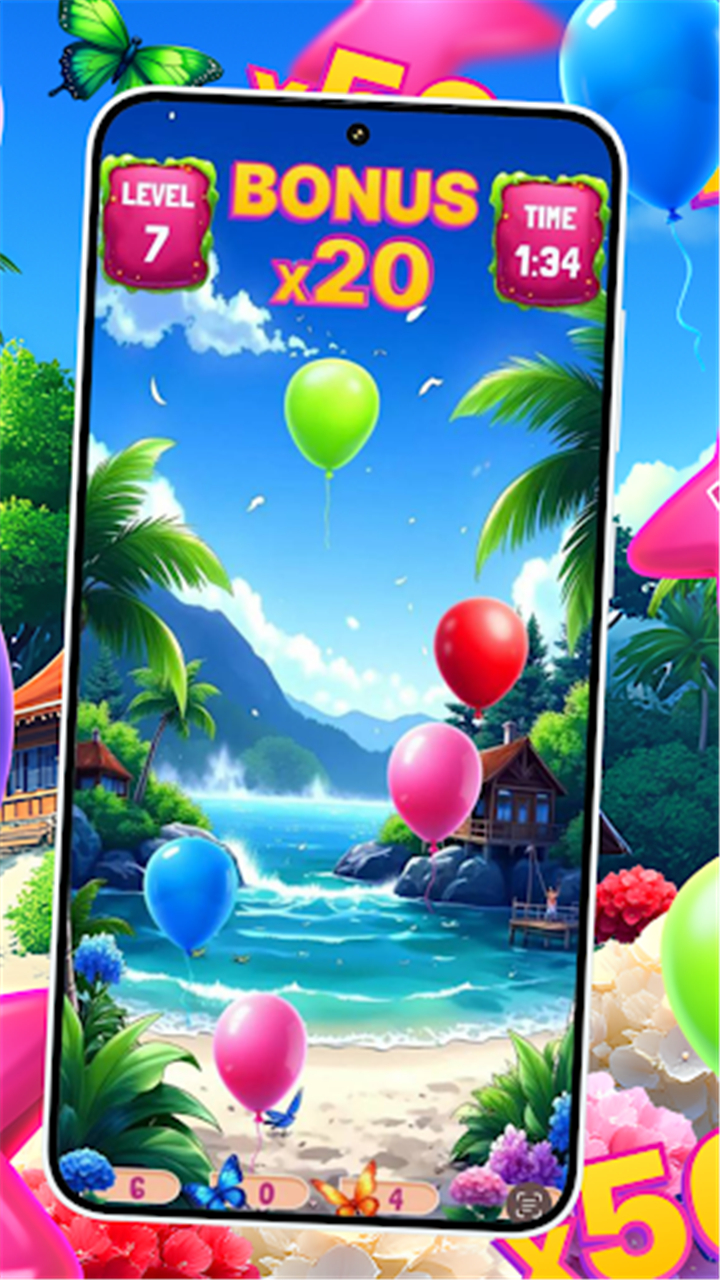 Find special balloons marked with +20, +30, or +50 to multiply your score instantly. These bonus balloons bring a thrilling sense of reward and encourage fast, focused tapping.