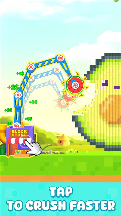 Block Crusher: Bucket Teardown includes several power-ups, such as dynamite and the wrecking ball, which help you crush tougher blocks. These power-ups add an element of strategy and can be used to clear large groups of blocks at once.