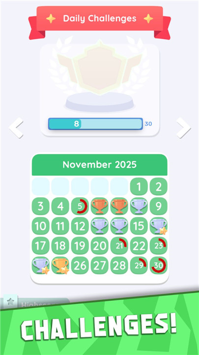 Yes, daily challenges offer new puzzles every day and provide opportunities to earn high scores and trophies.