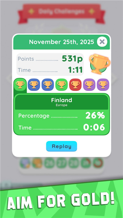 Earn golden trophies by mastering the borders of every nation. Completing collections of countries offers long-term goals and a strong sense of accomplishment.