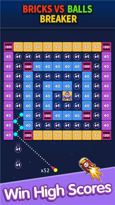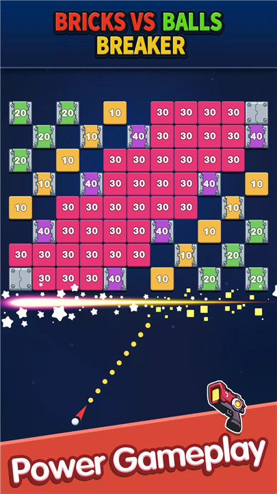 Simply press and hold on the screen to aim, then release to shoot balls toward the bricks. Each collision damages the bricks until they break and disappear. Clear all bricks to advance to the next stage, but be careful—if bricks reach the bottom, the game ends.