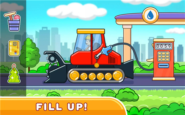 Your child can build houses, wash cars, refuel vehicles, complete puzzles, and race trucks—all in a bright, interactive learning world!