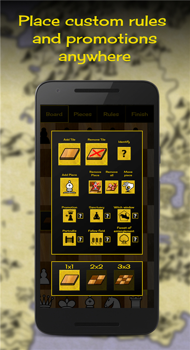 • Define your own victory conditions and promotion rules to challenge the traditional boundaries of the game.