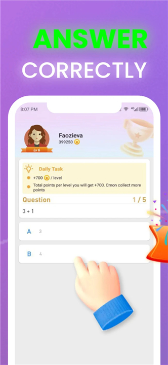 • Five-Question Sprint: Answer five questions correctly to earn 200 points and unlock the next level.