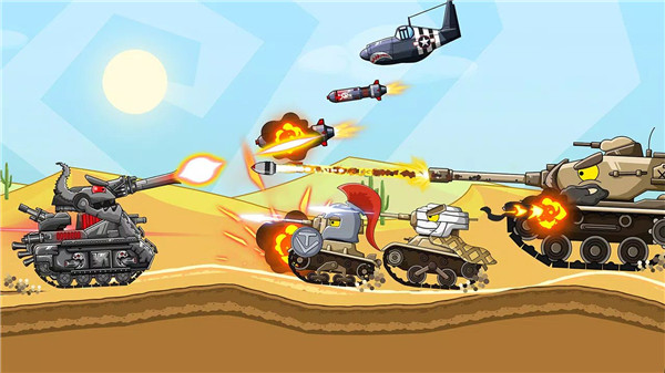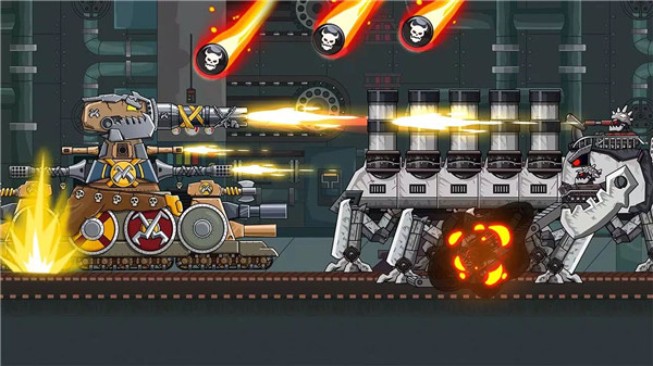 It’s a 2D tank combat game featuring 1v1 to 5v5 battles, story mode, PvP arenas, customizable tanks, and robot enemies.