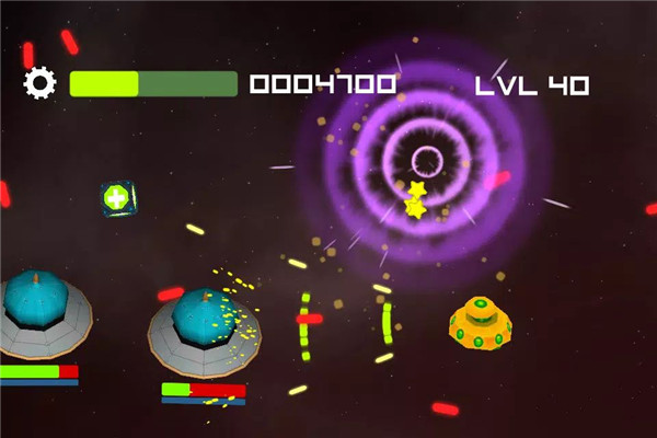 No joystick or keyboard is required. The spaceship fires automatically while movement is handled through a simple touch-and-drag interface, with an optional on-screen directional pad. High-quality 3D models, rich sound effects, dynamic music, and explosive particle effects bring every battle to life.