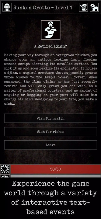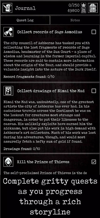 Grim Quest – Old School RPG is a single-player dark fantasy adventure set in the doomed city of Ashborne, standing against a creeping, malevolent force known as the Dark. Drawing inspiration from classic tabletop role-playing games and legendary dungeon crawlers, Grim Quest delivers a compact yet deeply atmospheric experience. Written storytelling, branching text events, and extensive lore create the feeling of a solo Dungeons & Dragons campaign or a classic choose-your-own-adventure book.
