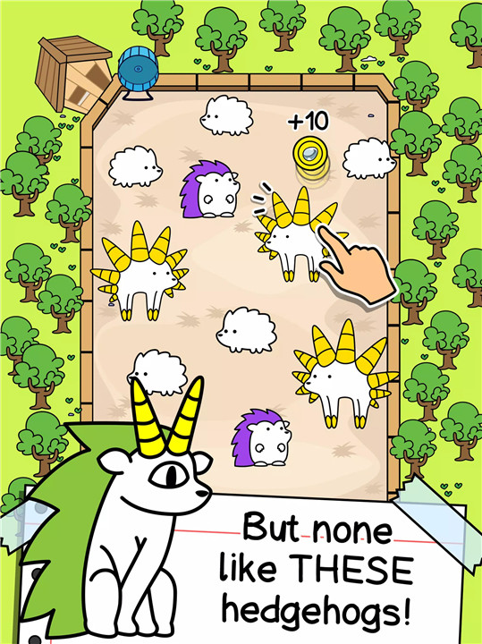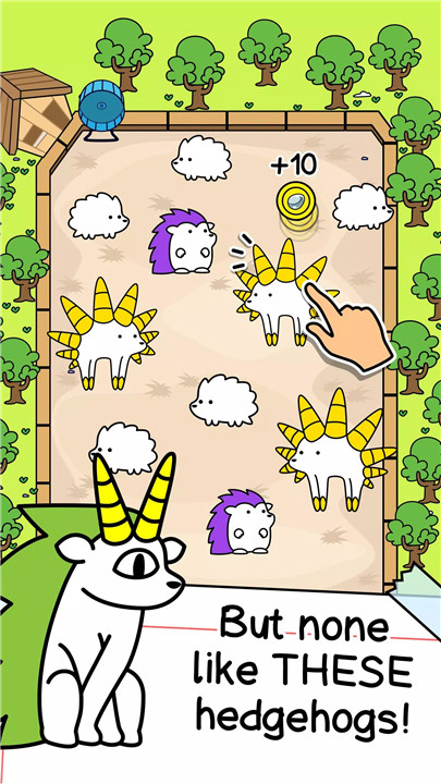 Use hedgehog eggs to generate coins, which can be used to buy more creatures. Want to speed things up? Tap fiercely on a hedgehog to pop out coins even faster. It's oddly satisfying!