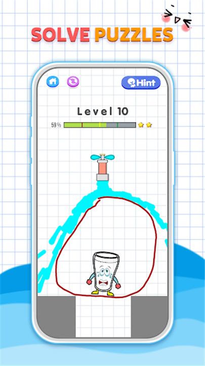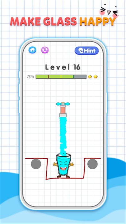 In this game, your goal is simple yet intriguing: draw lines to guide water into a glass, filling it up while avoiding obstacles.