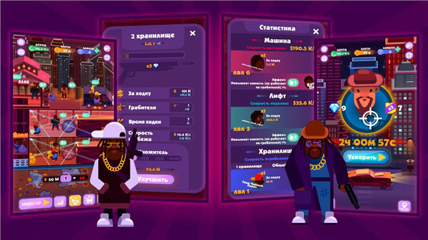 The game supports both active and idle gameplay. Earnings continue to grow even when not actively playing, thanks to assistants and partners who manage operations and collect wealth automatically.