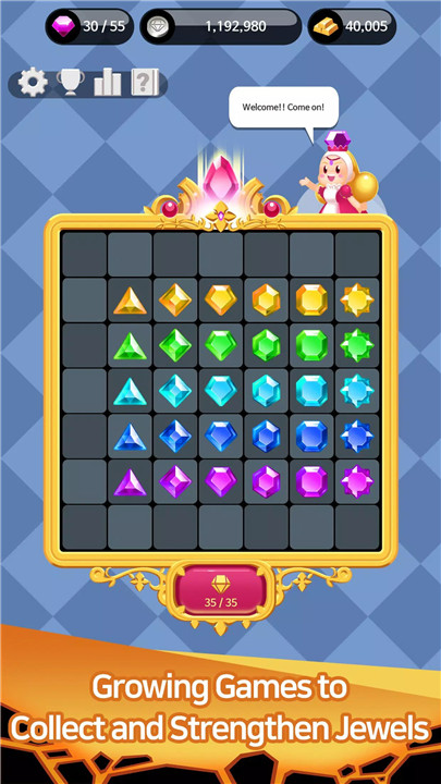Jewels Princess is a gem-merging adventure game where players protect the princess by merging gemstones and battling monsters.