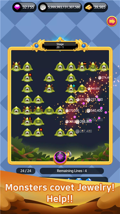 Monsters drop silver coins, and completing achievements grants additional rewards. Lucky Boxes periodically appear, providing chances to obtain rare and high-grade gems. This reward system keeps gameplay exciting and encourages continuous progression.
