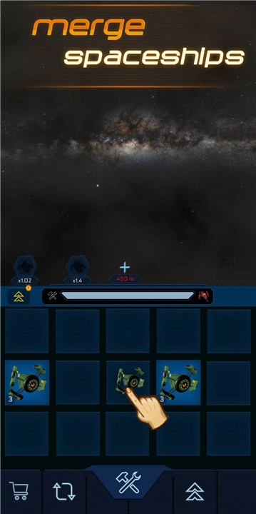Players can research new technologies to improve merging techniques, boost earnings, and unlock advanced spacecraft. Scientific exploration and technological progression add depth to the game, allowing for continuous strategic development and customization of the armada.