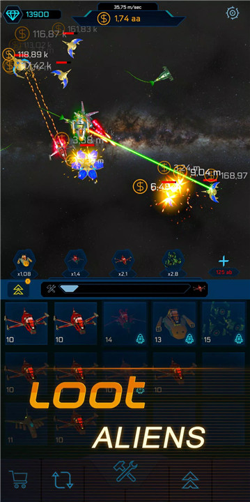 The game includes thrilling idle space battles where starships face off against alien invaders. Each ship can participate in combat simulations, and upgrading battle slots strengthens the fleet and boosts earnings. Vivid visual effects highlight the uniqueness of each spacecraft as players engage in galactic warfare. Boss fights against massive starships, such as the heavily shielded Galleon, challenge players to utilize skill and strategy for huge rewards.