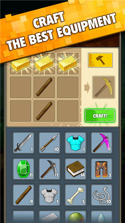 Use gathered materials to craft weapons, armor, gems, and tools at the workbench and forge. Upgrading equipment enhances combat strength and mining efficiency, allowing players to progress further and tackle tougher challenges.