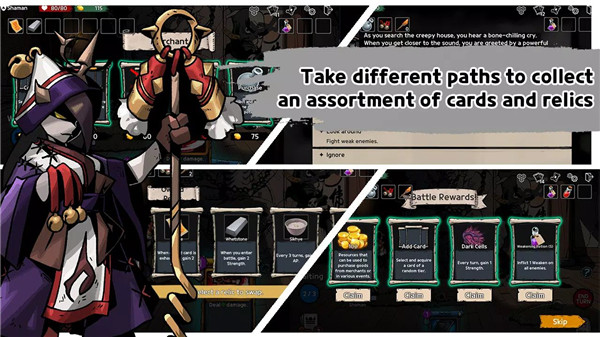 Build powerful combinations using hundreds of cards and relics. Discover game-changing relics throughout your journey that enhance card synergy and open up new tactical possibilities. The more you explore, the more creative your strategies become.