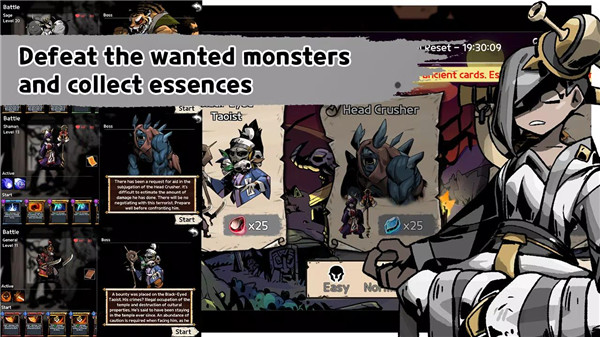 Visit Merchants to buy new cards or useful items. Rest and upgrade your deck at Camps, and tackle daily monster hunts to earn special essences. Every corner of the game offers opportunities for growth and risk.