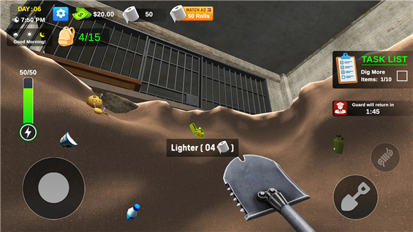 A: Absolutely! You'll start with improvised digging items, but you can strategically upgrade to professional-grade equipment for a swifter and more silent escape, enhancing your digging speed and effectiveness.
