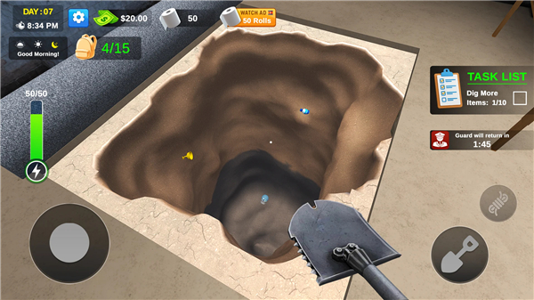 • Master realistic digging mechanics, meticulously managing tools, stamina, and precious time.