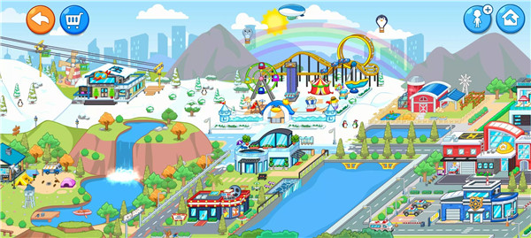 Add locations, pets, costumes, furniture, outfits, and more to your custom world. Change weather conditions—sun, rain, snow, fog—or switch between day and night. Kids control everything in their city and can build stories that match their imagination.