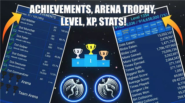 Unlock over 750 skins with different achievements, challenges, or just for fun. Even better, upload your own custom skin to show off your style in-game. Every blob can be as unique as its player!