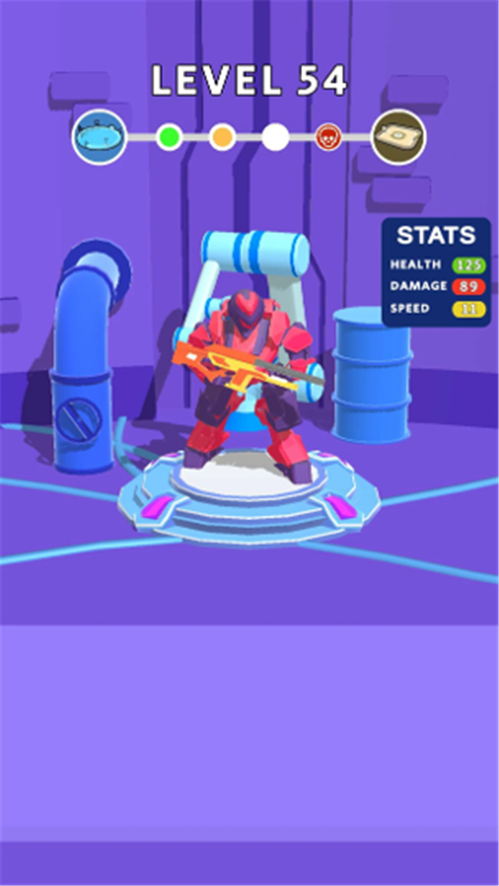 Face gigantic boss robots in advanced levels to test your skills. Beating these mechanical titans rewards you with new upgrades, suits, and legendary weapons.