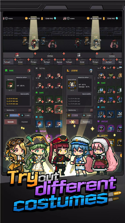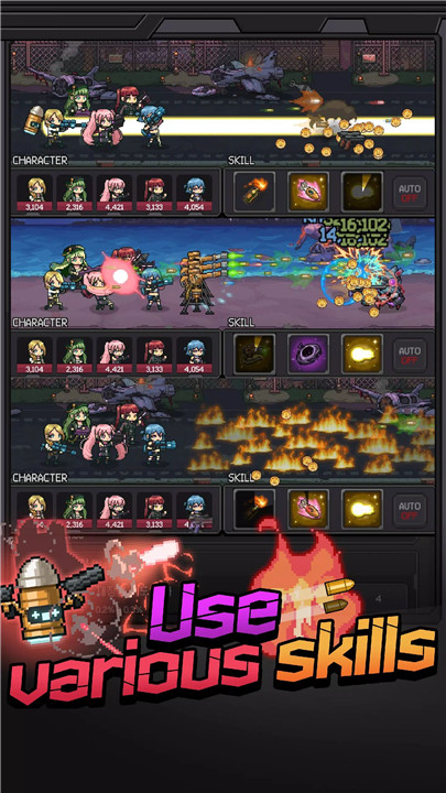 Guns and Girls brings together pixel art, military themes, mecha elements, and RPG progression into one addictive experience. Set in a fast-paced world filled with endless waves of enemies, the game focuses on simplicity, action, and continuous growth.