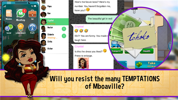 This feature allows moral choice and consequence. Every decision affects your journey: will you climb the ladder through honesty and hard work, or through manipulation and shortcuts? Your actions shape your reputation across Mboaville.