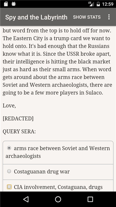 Bug fixes. If you enjoy "The Spy and the Labyrinth", please leave us a written review. It really helps!