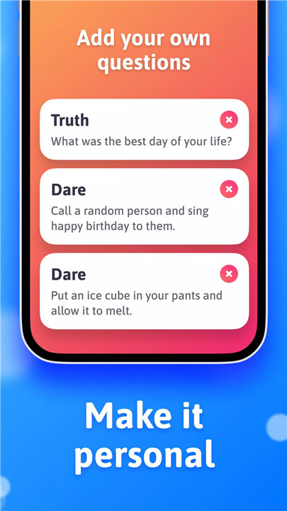 Choose from kid-friendly prompts or dive into spicy dares with your closest friends. The app is designed to adapt to your group’s comfort level and preferences.