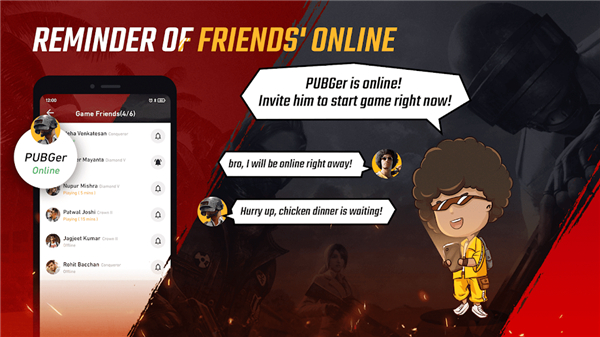 WeGame for PUBG Mobile provides an online friend reminder feature, letting you know when your friends are online, even without logging into the game. This is perfect for organizing matches and ensuring you don’t miss out on playing with your teammates。