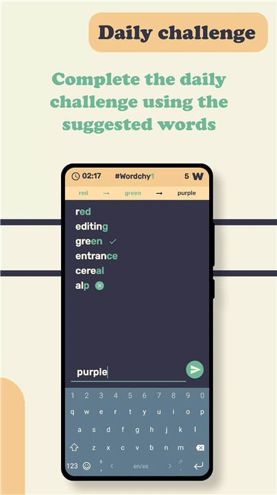The Daily Challenge mode provides a new puzzle every day. Players receive three suggested words and must continue the chain using those prompts. This daily activity encourages consistent practice and provides a fresh word puzzle challenge each day.