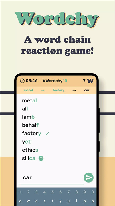 Wordchy is a word chain reaction game where players create connected words to form the longest possible chain while improving vocabulary skills.