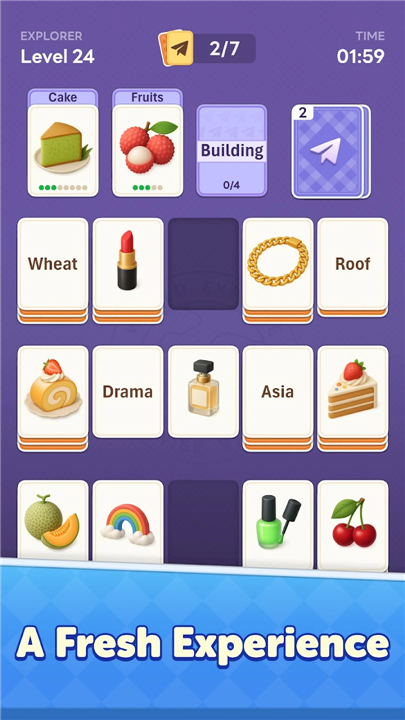 • Experience a groundbreaking blend that ingeniously combines the familiar card-stacking and sequential clearing mechanics of solitaire with the cognitive demands of word association, categorization, and semantic understanding.