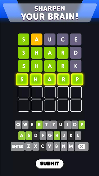 Wordle!’s Daily Puzzle mode invites players to solve a fresh brain teaser every day. Six guesses are given to find the secret word, and each guess provides helpful feedback—yellow tiles indicate correct letters in the wrong place, while green tiles mark letters placed perfectly. Once a word is solved, results can be shared with friends.