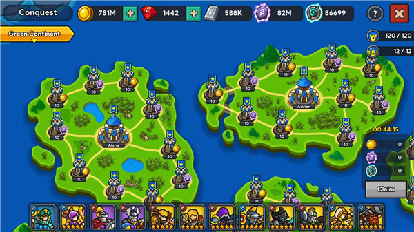 Conquest War is a strategic mode where you battle across different continents—each with unique challenges—to expand your kingdom and earn top-tier rewards.